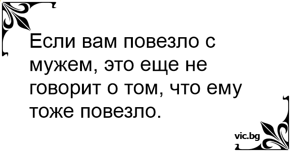 Если вам повезло с мужем, это еще не говорит о том, что ему тоже повезло.