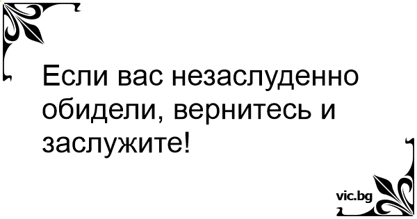 Если вас незаслуденно обидели, вернитесь и заслужите!