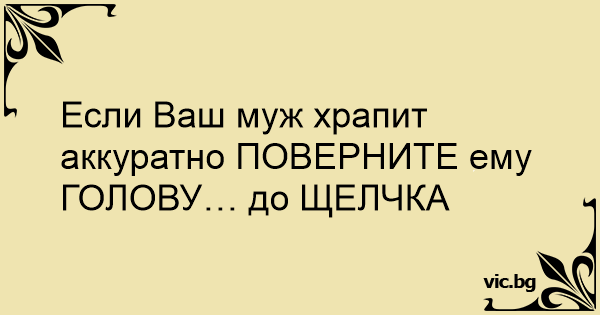 Если Ваш муж храпит аккуратно ПОВЕРНИТЕ ему ГОЛОВУ… до ЩЕЛЧКА