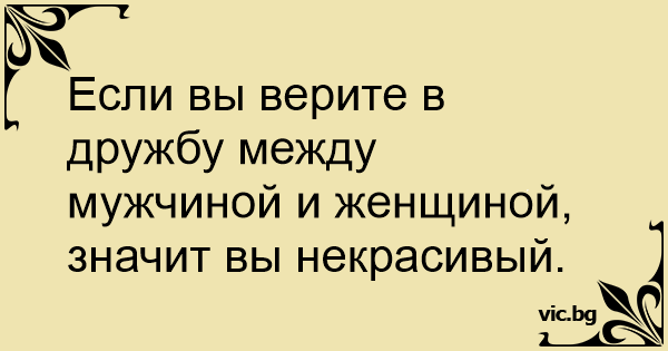 Если вы верите в дружбу между мужчиной и женщиной, значит вы некрасивый.
