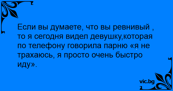 Если вы думаете, что вы ревнивый , то я сегодня видел девушку,которая по телефону говорила парню «я не трахаюсь, я просто очень быстро иду».