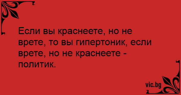 Если вы краснеете, но не врете, то вы гипертоник, если врете, но не краснеете - политик.