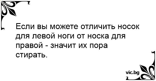 Если вы можете отличить носок для левой ноги от носка для правой - значит их пора стирать.