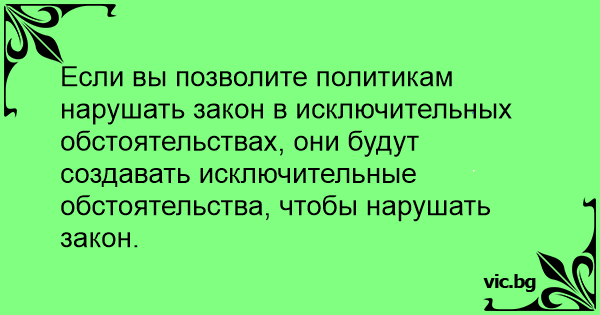 Если вы позволите политикам нарушать закон в исключительных обстоятельствах, они будут создавать исключительные обстоятельства, чтобы нарушать закон.