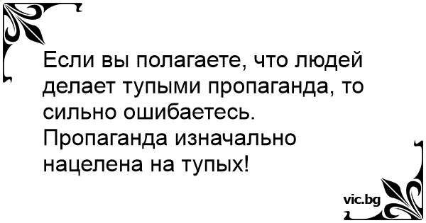 Если вы полагаете, что людей делает тупыми пропаганда, то сильно ошибаетесь. Пропаганда изначально нацелена на тупых!