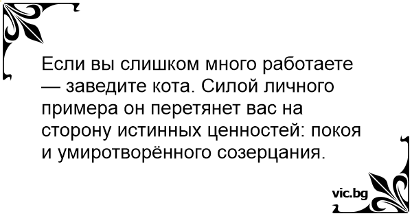 Если вы слишком много работаете — заведите кота. Силой личного примера он перетянет вас на сторону истинных ценностей: покоя и умиротворённого созерцания.