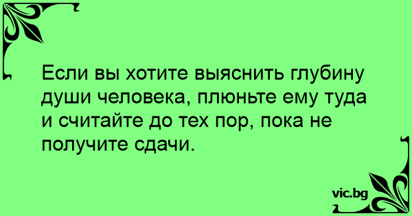 Если вы хотите выяснить глубину души человека, плюньте ему туда и считайте до тех пор, пока не получите сдачи.