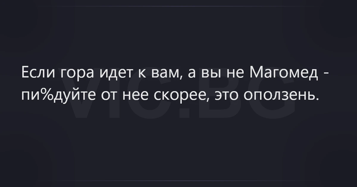 Если гора идет к вам, а вы не Магомед - пи%дуйте от нее скорее, это оползень.
