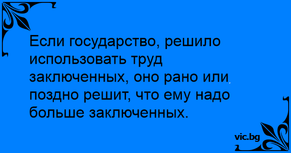Если государство, решило использовать труд заключенных, оно рано или поздно решит, что ему надо больше заключенных.