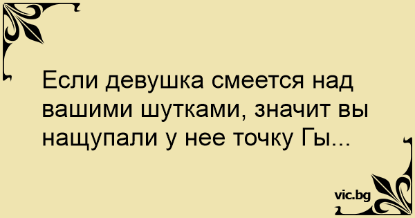 Если девушка смеется над вашими шутками, значит вы нащупали у нее точку Гы...