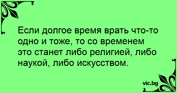 Если долгое время врать что-то одно и тоже, то со временем это станет либо религией, либо наукой, либо искусством.