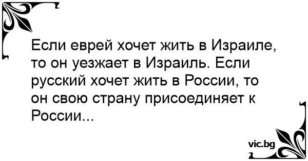 Если еврей хочет жить в Израиле, то он уезжает в Израиль. Если русский хочет жить в России, то он свою страну присоединяет к России...