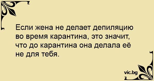 Если жена не делает депиляцию во время карантина, это значит, что до карантина она делала её не для тебя.