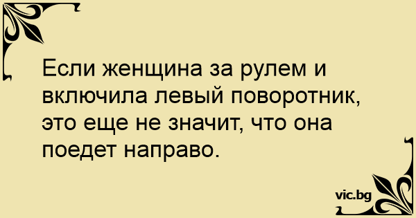 Если женщина за рулем и включила левый поворотник, это еще не значит, что она поедет направо.