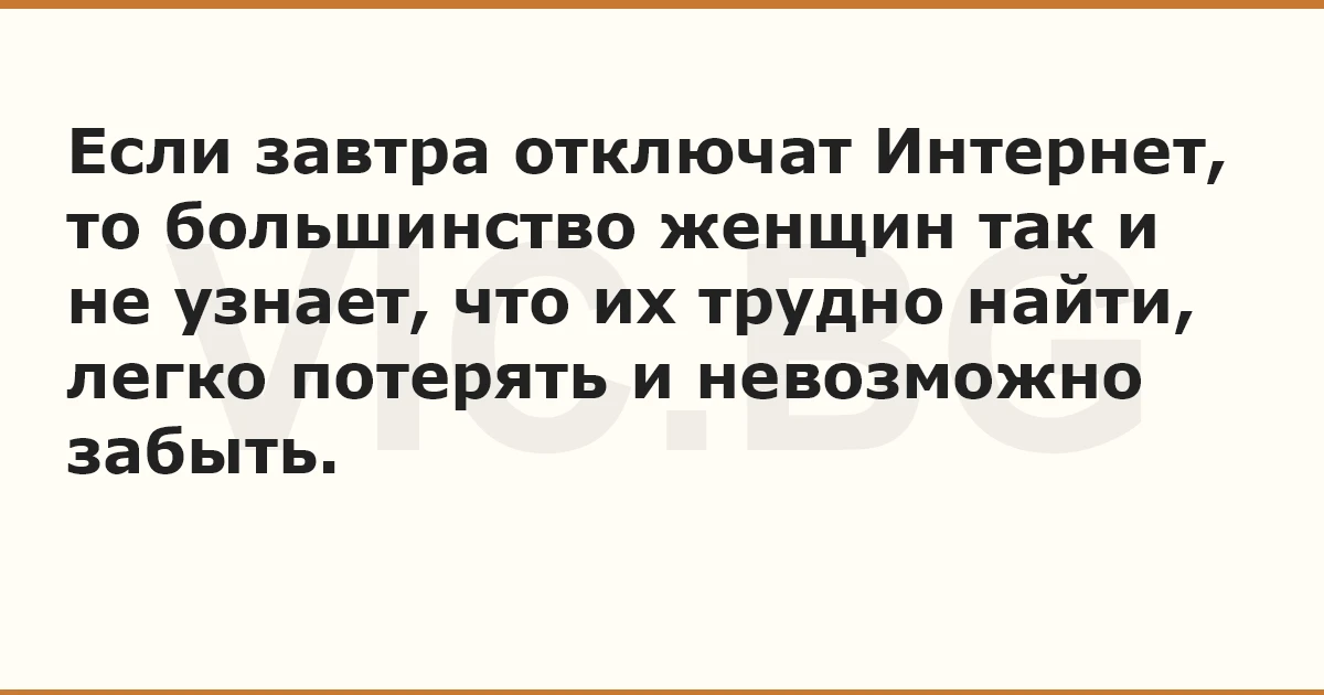 Если завтра отключат Интернет, то большинство женщин так и не узнает, что их трудно найти, легко потерять и невозможно забыть.