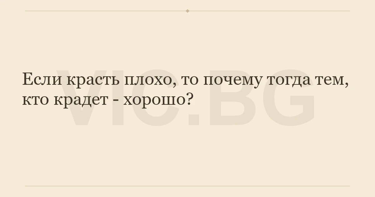 Если красть плохо, то почему тогда тем, кто крадет - хорошо?