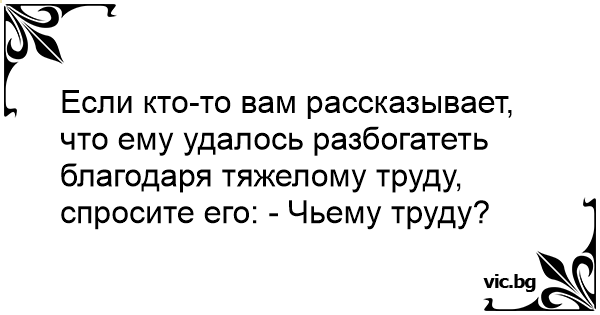 Если кто-то вам рассказывает, что ему удалось разбогатеть благодаря тяжелому труду, спросите его: - Чьему труду?