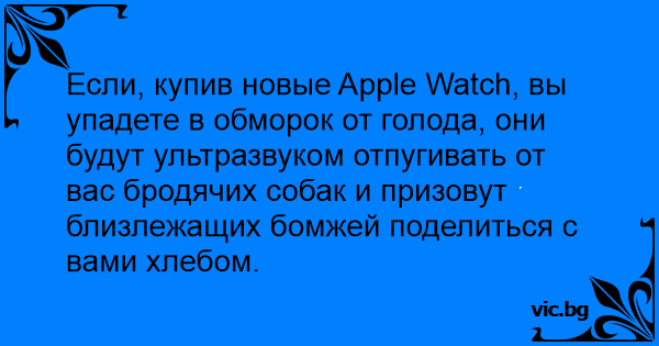Если, купив новые Apple Watch, вы упадете в обморок от голода, они будут ультразвуком отпугивать от вас бродячих собак и призовут близлежащих бомжей поделиться с вами хлебом.
