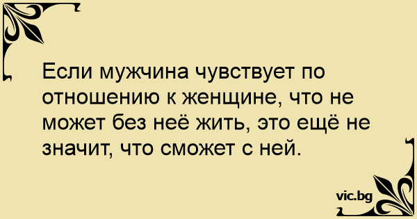 Если мужчина чувствует по отношению к женщине, что не может без неё жить, это ещё не значит, что сможет с ней.