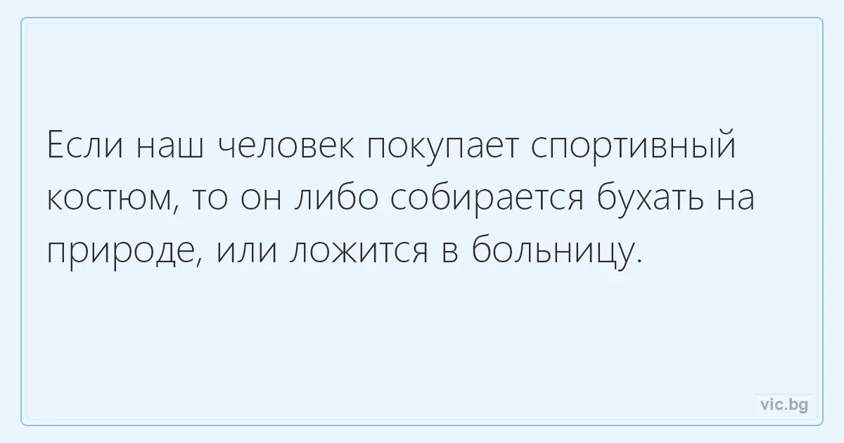 Если наш человек покупает спортивный костюм, то он либо собирается бухать на природе, или ложится в больницу.<br />