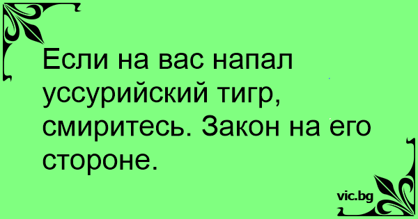 Если на вас напал уссурийский тигр, смиритесь. Закон на его стороне.