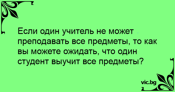 Если один учитель не может преподавать все предметы, то как вы можете ожидать, что один студент выучит все предметы?