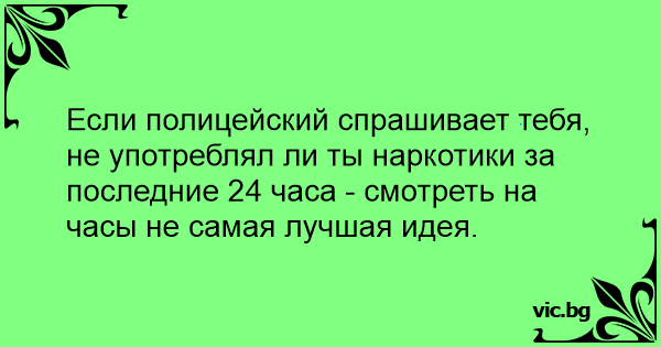 Если полицейский спрашивает тебя, не употреблял ли ты наркотики за последние 24 часа - смотреть на часы не самая лучшая идея.