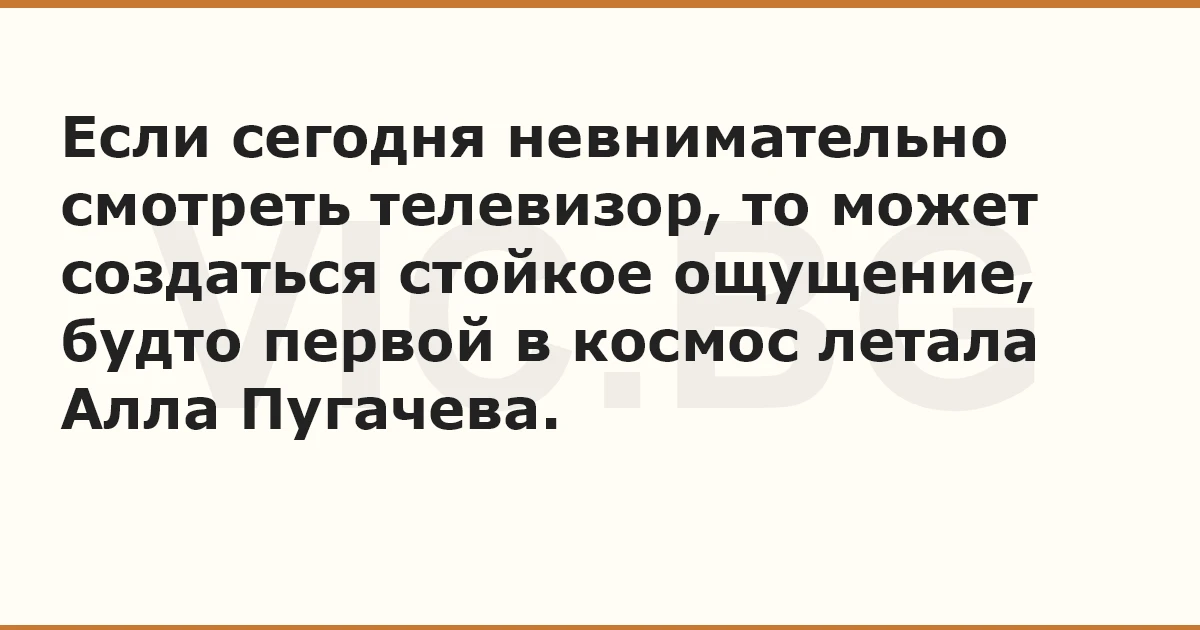 Если сегодня невнимательно смотреть телевизор, то может создаться стойкое ощущение, будто первой в космос летала Алла Пугачева.