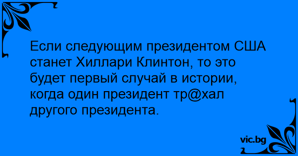 Если следующим президентом США станет Хиллари Клинтон, то это будет первый случай в истории, когда один президент тр@хал другого президента.