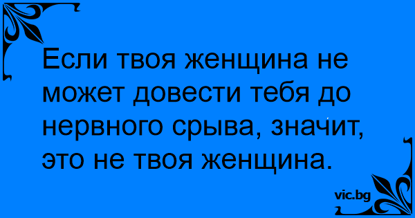 Если твоя женщина не может довести тебя до нервного срыва, значит, это не твоя женщина.