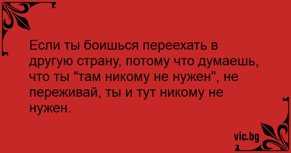 Если ты боишься переехать в другую страну, потому что думаешь, что ты "там никому не нужен", не переживай, ты и тут никому не нужен.