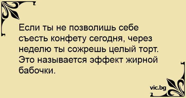 Если ты не позволишь себе съесть конфету сегодня, через неделю ты сожрешь целый торт.