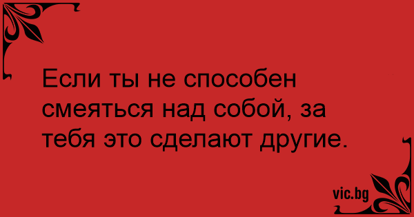 Если ты не способен смеяться над собой, за тебя это сделают другие.