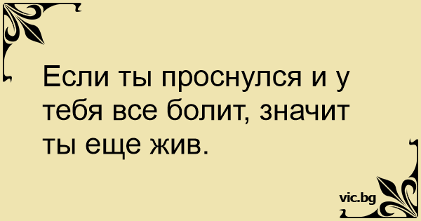 Если ты проснулся и у тебя все болит, значит ты еще жив.