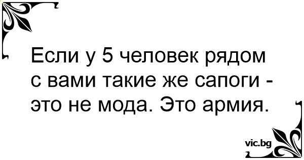 Если у 5 человек рядом с вами такие же сапоги - это не мода. Это армия.