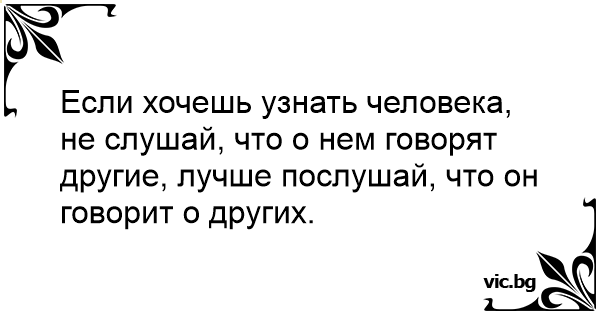 Если хочешь узнать человека, не слушай, что о нем говорят другие, лучше послушай, что он говорит о других.