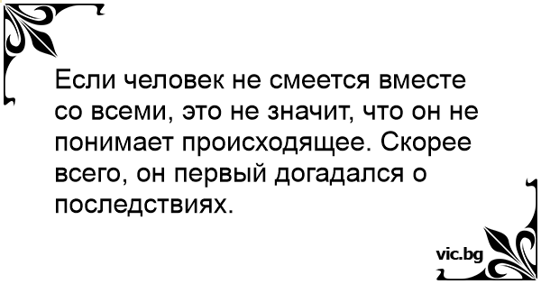 Если человек не смеется вместе со всеми, это не значит, что он не понимает происходящее. Скорее всего, он первый догадался о последствиях.