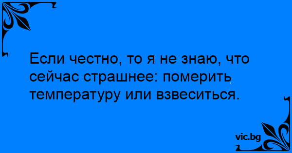 Если честно, то я не знаю, что сейчас страшнее: померить температуру или взвеситься.
