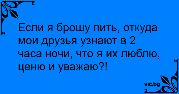 Если я брошу пить, откуда мои друзья узнают в 2 часа ночи, что я их люблю, ценю и уважаю?!