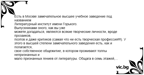 Есть в Москве замечательное высшее учебное заведение под названием Литературный институт имени Горького.