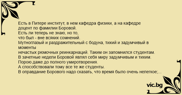 Есть в Питере институт, в нем кафедра физики, а на кафедре доцент по фамилии Боровой.