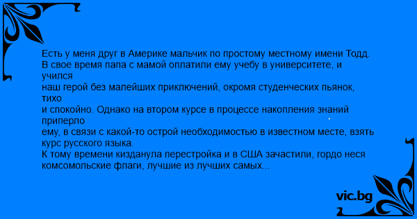 Есть у меня друг в Америке мальчик по простому местному имени Тодд.