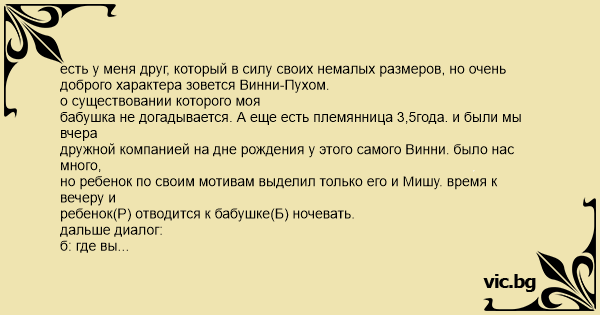есть у меня друг, который в силу своих немалых размеров, но очень доброго характера зовется Винни-Пухом.