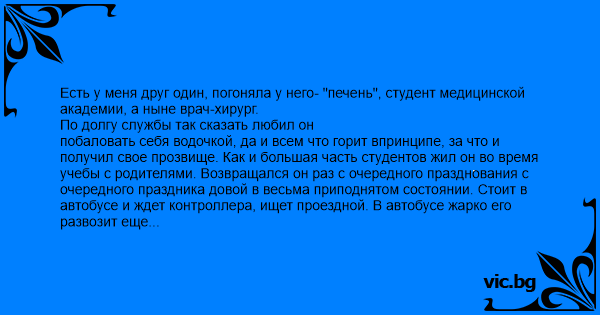 Есть у меня друг один, погоняла у него- "печень", студент медицинской академии, а ныне врач-хирург.