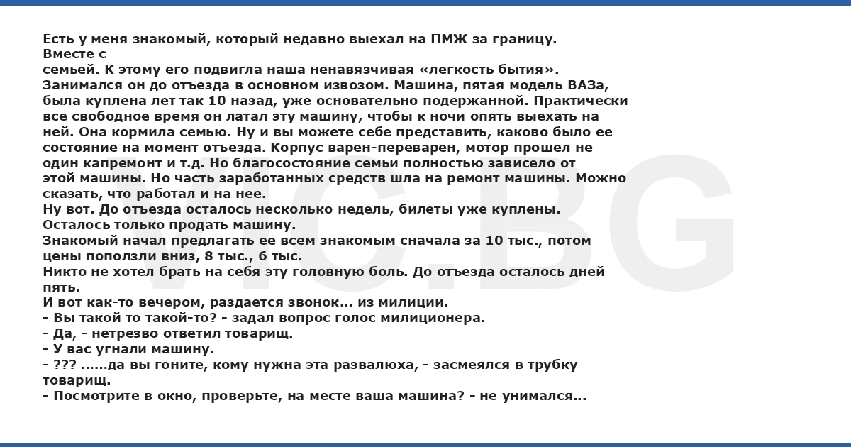 Товарищ нехотя пошел посмотреть. Машины не было!