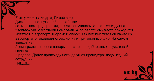 мотаться в аэропорт "Шереметьево-2". Так вот, выезжает он как-то из