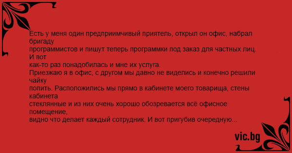 Приезжаю я в офис, с другом мы давно не виделись и конечно решили чайку