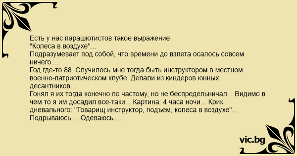 дневального: "Товарищ инструктор, подъем, колеса в воздухе"...