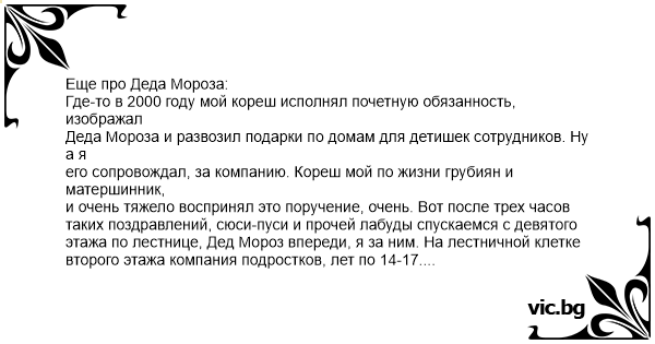 этажа по лестнице, Дед Мороз впереди, я за ним. На лестничной клетке
