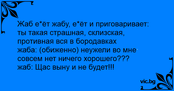 Жаб е*ёт жабу, е*ёт и приговаривает: